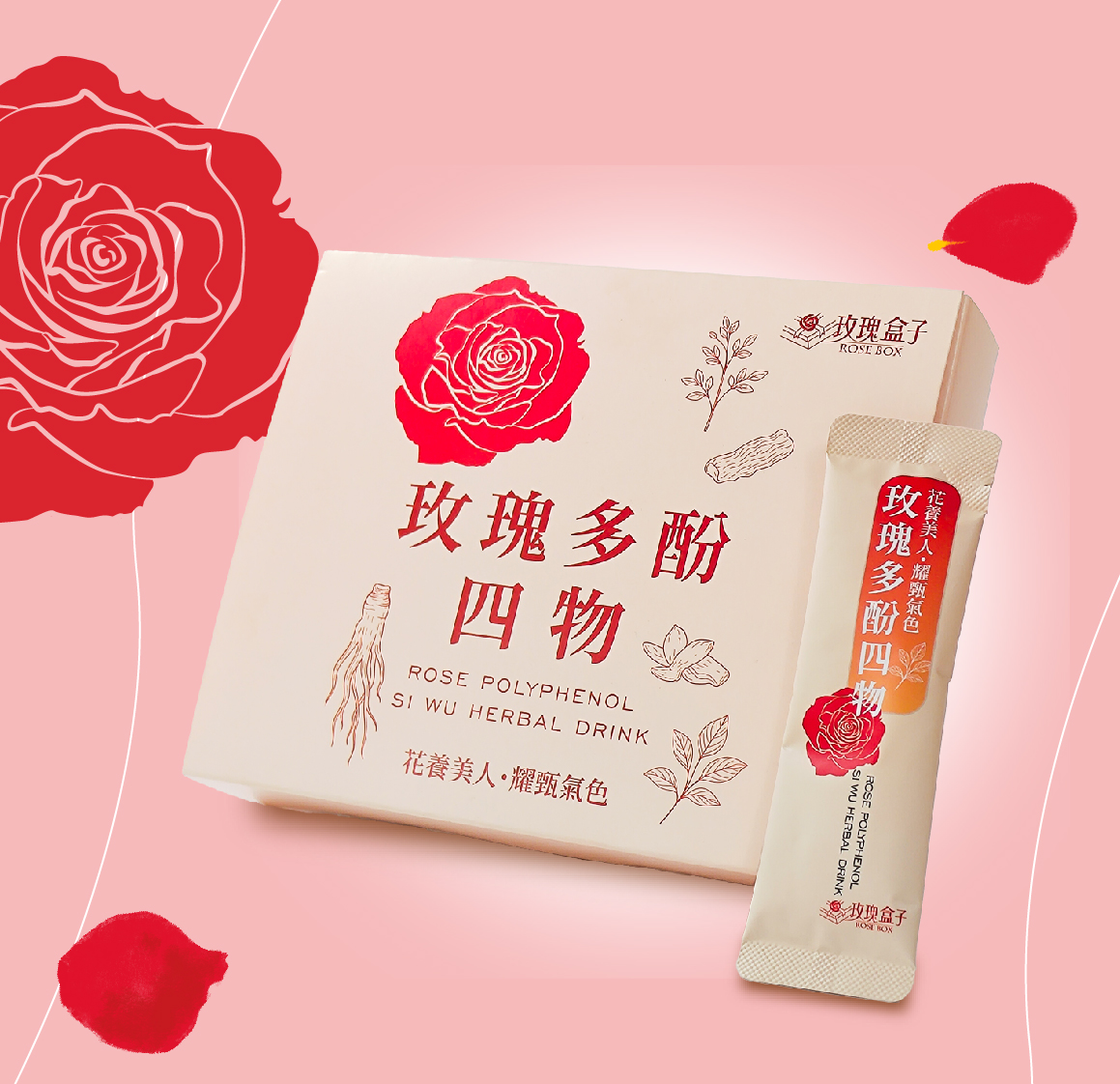 精選高等級玫瑰花多酚結合經典四物(當歸、川芎、熟地、白芍)調整體質、溫潤呵護,無添加香精及防腐劑,調理好氣色。